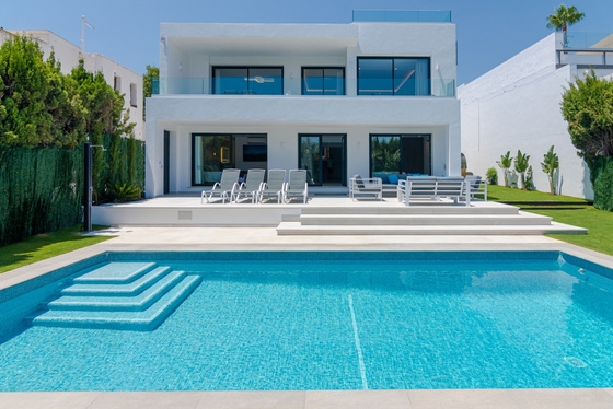 The outdoor areas are equally impressive, featuring a sun-drenched pool terrace, covered dining areas, and a Swedish sauna for ultimate relaxation. Located in the heart of Guadalmina Alta, you're just minutes from world-class golf courses, pristine beaches, and the vibrant town of San Pedro de Alcántara with its excellent restaurants and amenities.