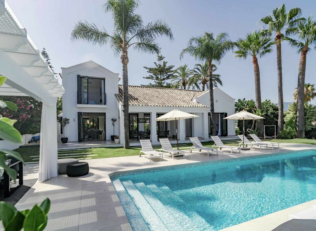 Outside, the 1,049m² plot provides ample space for the heated swimming pool, extensive terraces totaling 200m², and beautifully landscaped gardens. A separate cabana with outdoor kitchen creates the perfect setting for al-fresco dining and entertaining. The property also includes a wine cellar for the discerning connoisseur, private garage, and all the amenities expected of a luxury Marbella residence. Minutes from world-class golf courses, the beach, and Puerto Banús.
