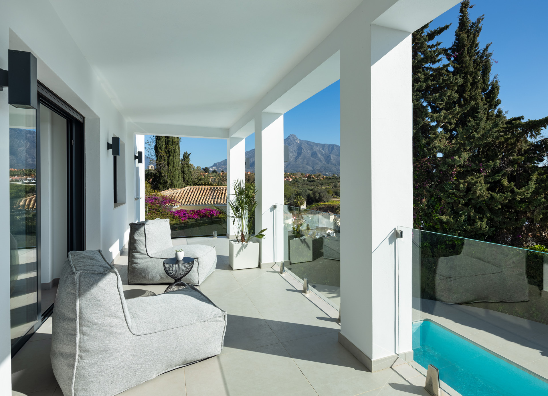 Puerto Banús is within comfortable walking distance, making it easy to enjoy an evening stroll along the marina, browse the luxury boutiques, or dine at one of the waterfront restaurants without the need for a car. The beaches of Nueva Andalucía and Puerto Banús are equally accessible on foot, with chiringuitos and beach clubs lining the shore throughout the summer months. For golfers, the renowned courses of Las Brisas, Los Naranjos, and Aloha are all within a five-minute drive.